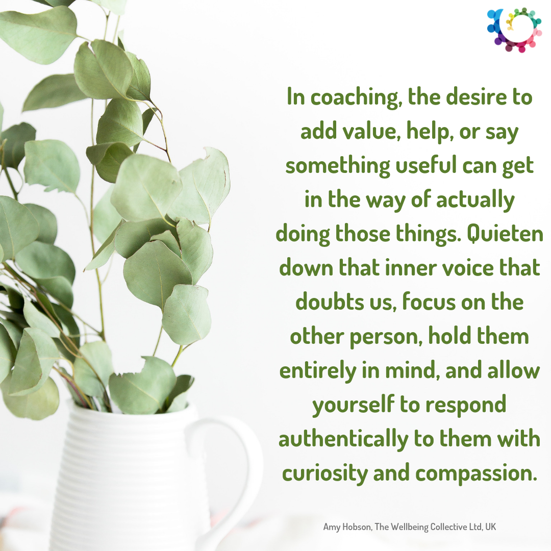 In coaching and facilitating, the desire to add value, help or say something useful can get in the way of actually doing those things. Without realising it, we can become focussed on ourselves rather than the other person, instantly undermining everything we hope to offer.